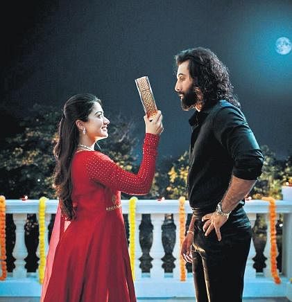 Love happens crudely, and misogynistically in Sandeep Reddy Vanga’s universe. Ranvijay spots Geetanjali (Rashmika Mandanna) while she is getting engaged. He looks at her like Kabir Singh or Arjun Reddy looked at their Preetis. I want her. Love here is more obsession and possession than affection. It is also manipulation. Ranvijay uses an evolutionary explanation to brainwash Gitanjali into marrying him. “In the olden days, there weren’t parents or castes, women chose their partners themselves. Who would you choose if not an alpha?” he asks her. It’s convoluted like feminism being mansplained.