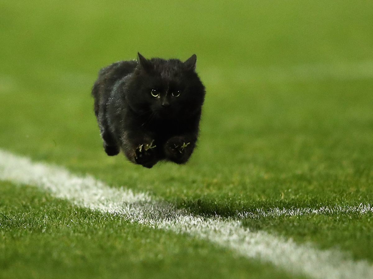 A black cat enters the field during a rugby match in Sydney. We think they’d be a good contender in the Cat’lympics.
