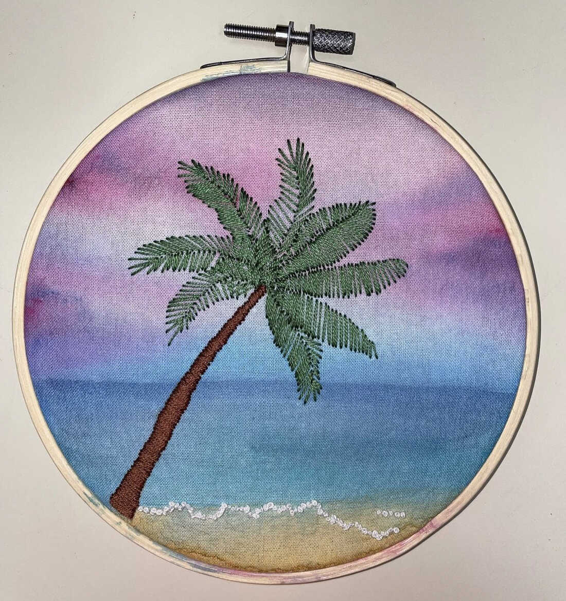 I got into watercolor painting in February of 2020 after seeing people on Instagram painting. I painted two jellyfish and they turned out really well. I was shocked. When the lockdown started just about a month later, it was a perfect pandemic hobby. About two years later, TikTok started pushing embroidery videos my way and I had some of the supplies at home already. I started with embroidering flowers onto the side of a pair of shoes that turned out really cute. Both skills were mostly learned by watching Instagram Reels and TikToks. I’ve even combined them by painting on fabric, then embroidering over it!